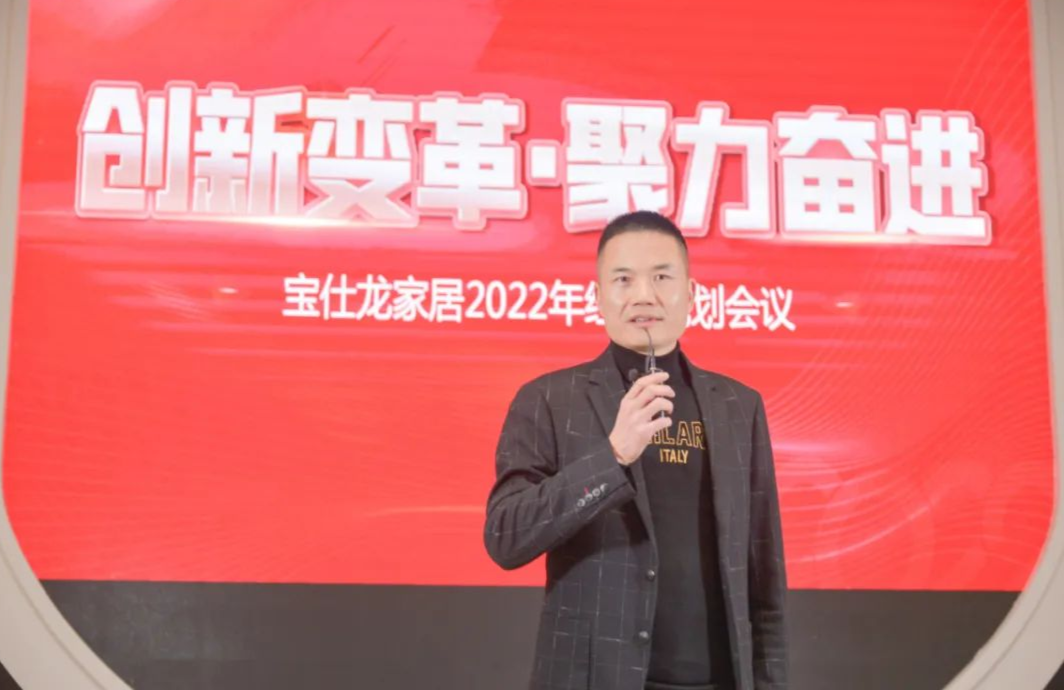 宝仕龙家居总经理朱旭明先生从企业发展战略规划、2022年新品上市预告以及新年工作布置三个方面进行了精彩的分享,希望公司员工及经销商们朝同一目标奋进,共同构建宝仕龙命运共同体。