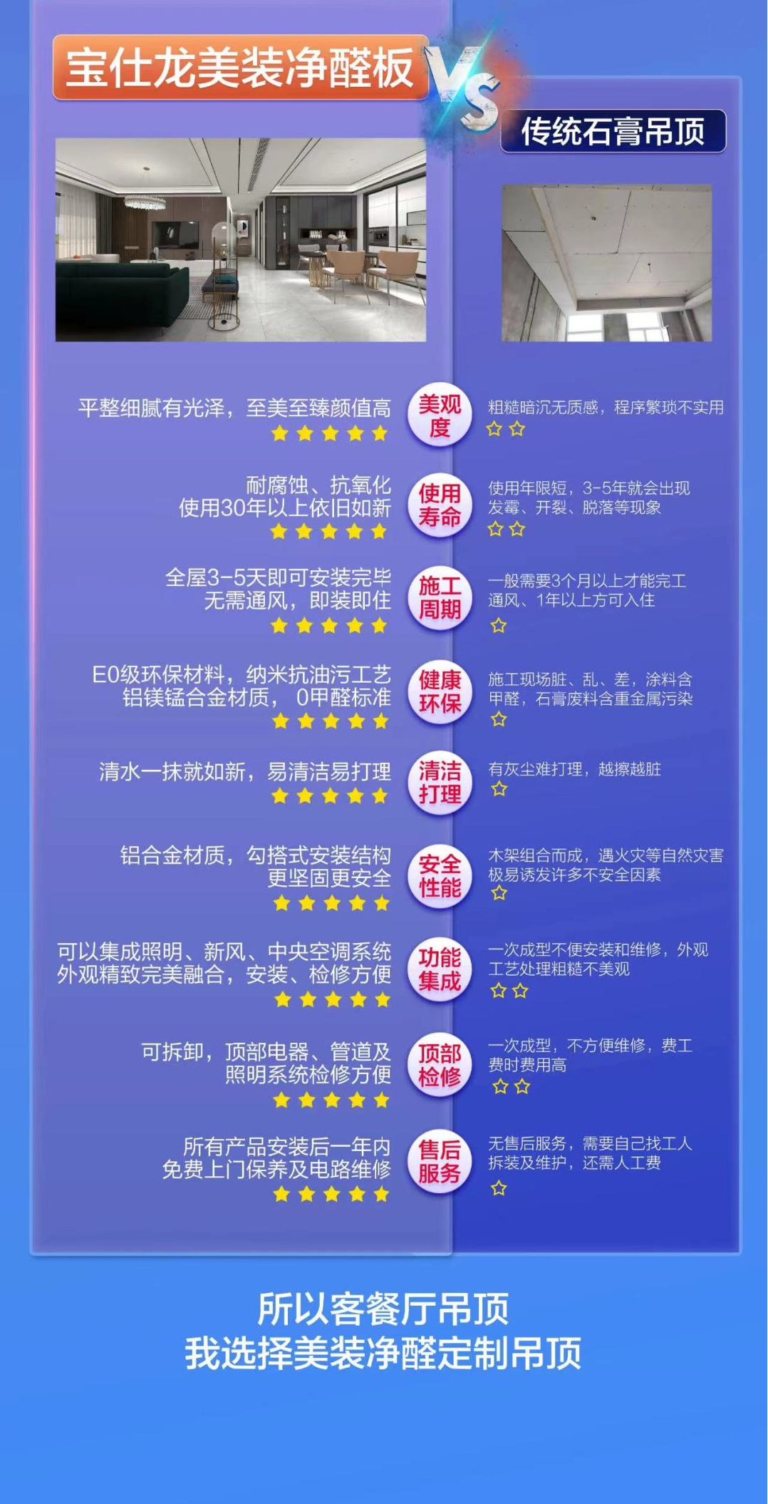 家装吊顶怎么选,请拾起你的偏爱,认准宝仕龙美装净醛定制吊顶。